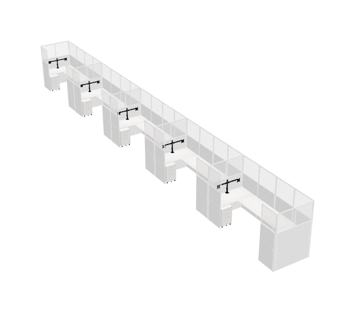 White U-shaped Panel System For 5 Person + Monitor Arm (double Arms) + Metal Mobile Drawers For 5 User(s)
