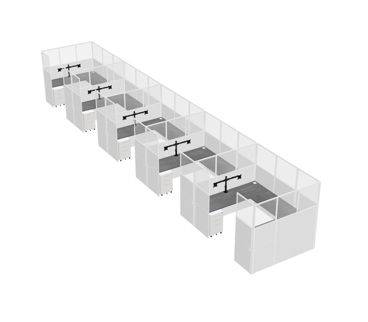 Grey U-shaped Panel System For 5 Person + Monitor Arm (double Arms) + Metal Mobile Drawers For 5 User(s)