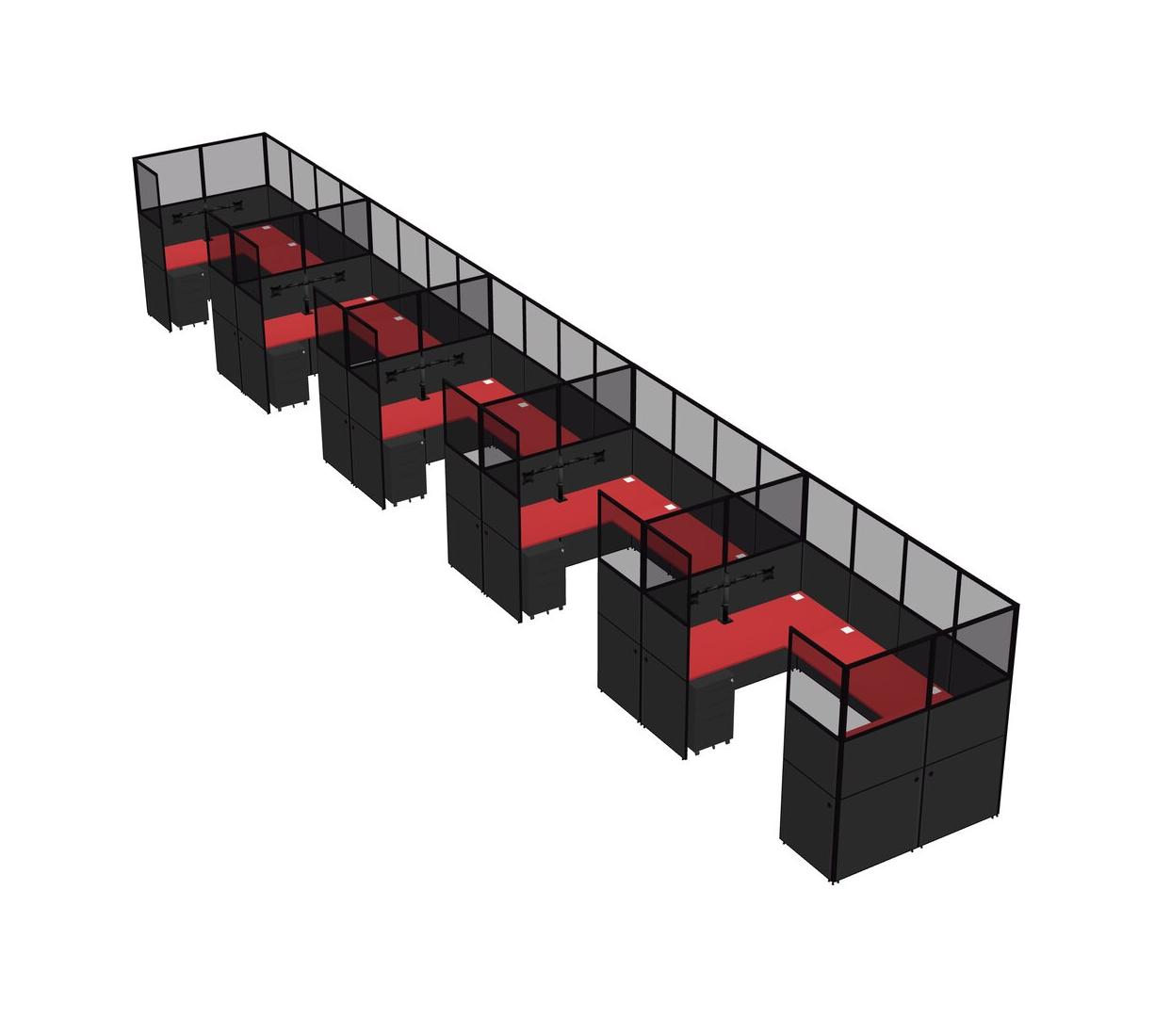 Prism Red U-shaped Panel System For 5 Person + Monitor Arm (double Arms) + Metal Mobile Drawers For 5 User(s)
