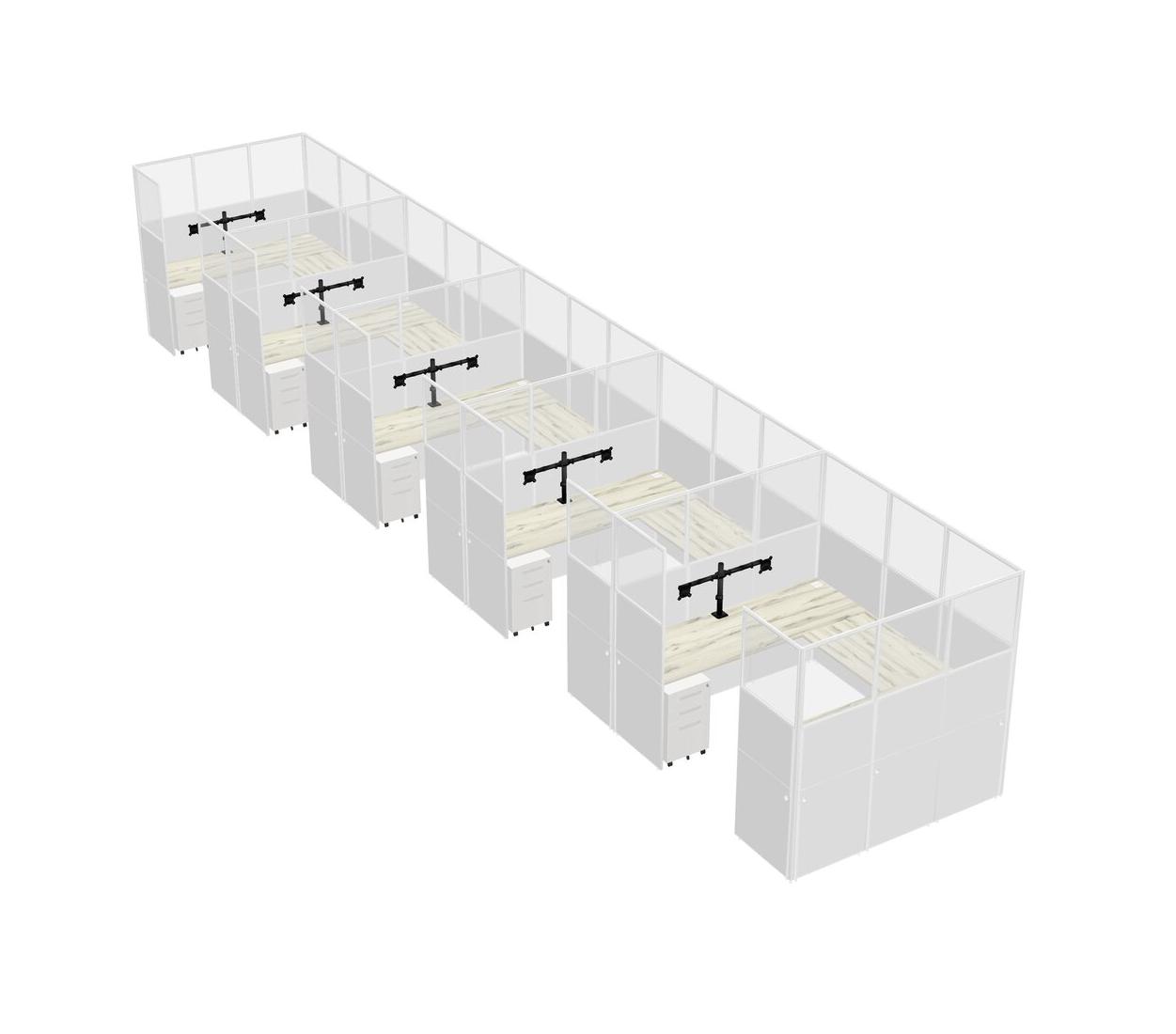 Heinne Holz U-shaped Panel System For 5 Person + Monitor Arm (double Arms) + Metal Mobile Drawers For 5 User(s)