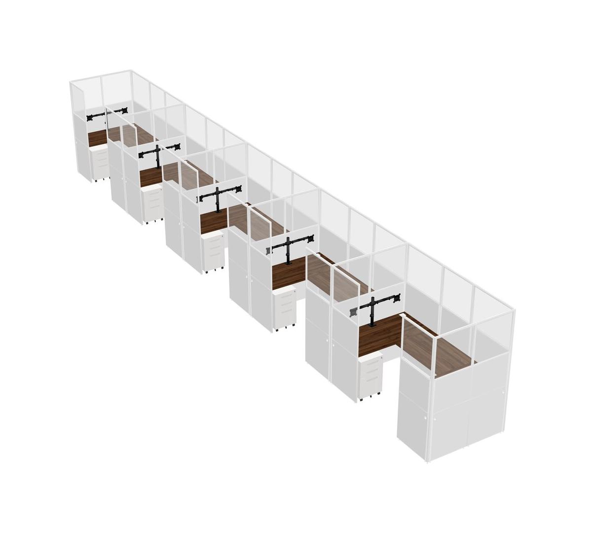 Columbia Walnut U-shaped Panel System For 5 Person + Monitor Arm (double Arms) + Metal Mobile Drawers For 5 User(s)