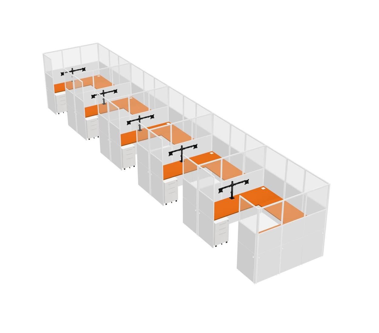 Orange U-shaped Panel System For 5 Person + Monitor Arm (double Arms) + Metal Mobile Drawers For 5 User(s)