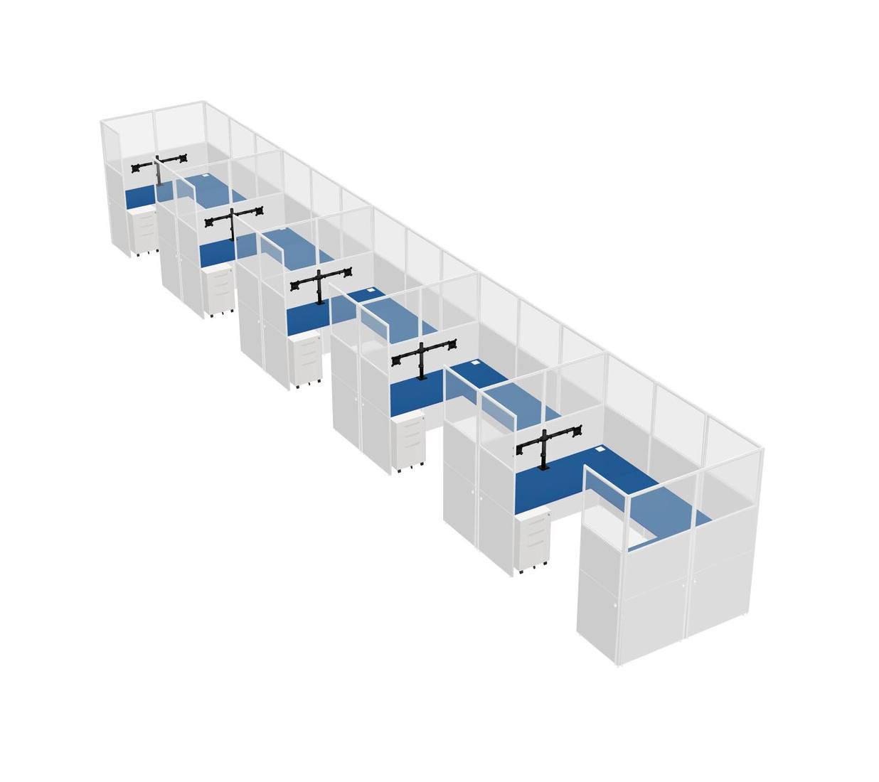 Prism Blue U-shaped Panel System For 5 Person + Monitor Arm (double Arms) + Metal Mobile Drawers For 5 User(s)