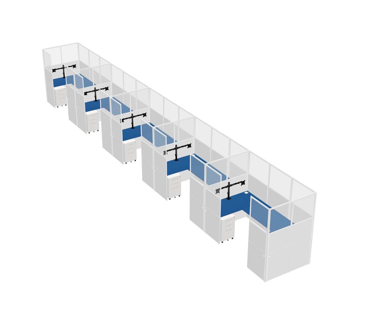 Prism Blue U-shaped Panel System For 5 Person + Monitor Arm (double Arms) + Metal Mobile Drawers For 5 User(s)