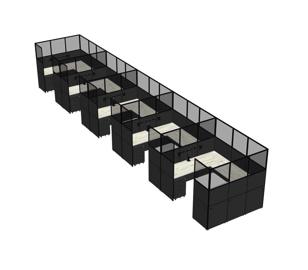 Heinne Holz U-shaped Panel System For 5 Person + Monitor Arm (double Arms) + Metal Mobile Drawers For 5 User(s)