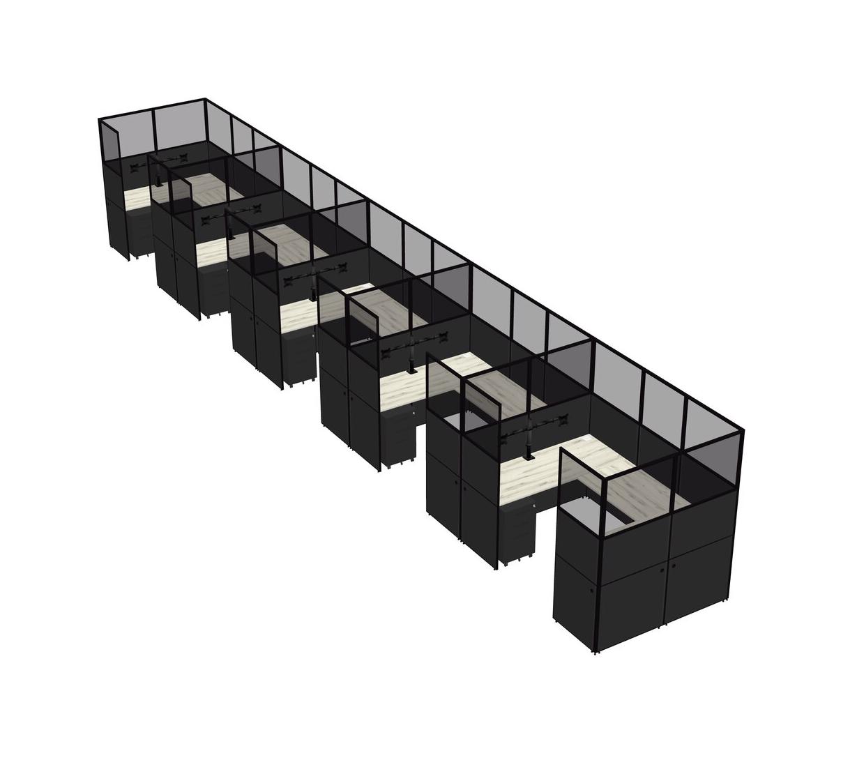 Heinne Holz U-shaped Panel System For 5 Person + Monitor Arm (double Arms) + Metal Mobile Drawers For 5 User(s)