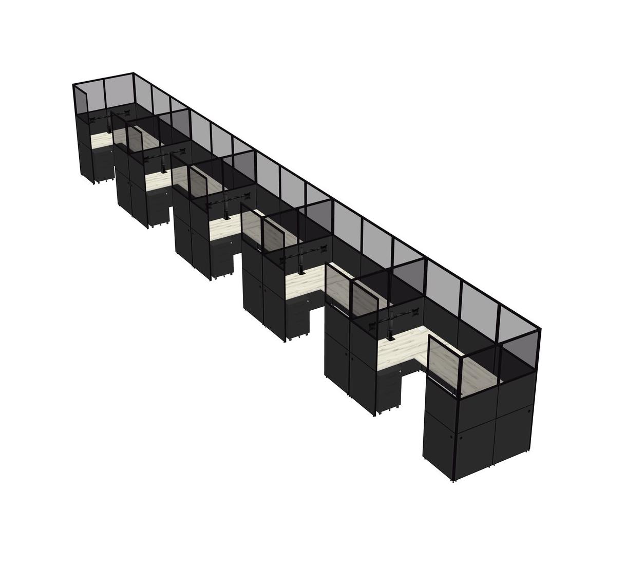 Heinne Holz U-shaped Panel System For 5 Person + Monitor Arm (double Arms) + Metal Mobile Drawers For 5 User(s)