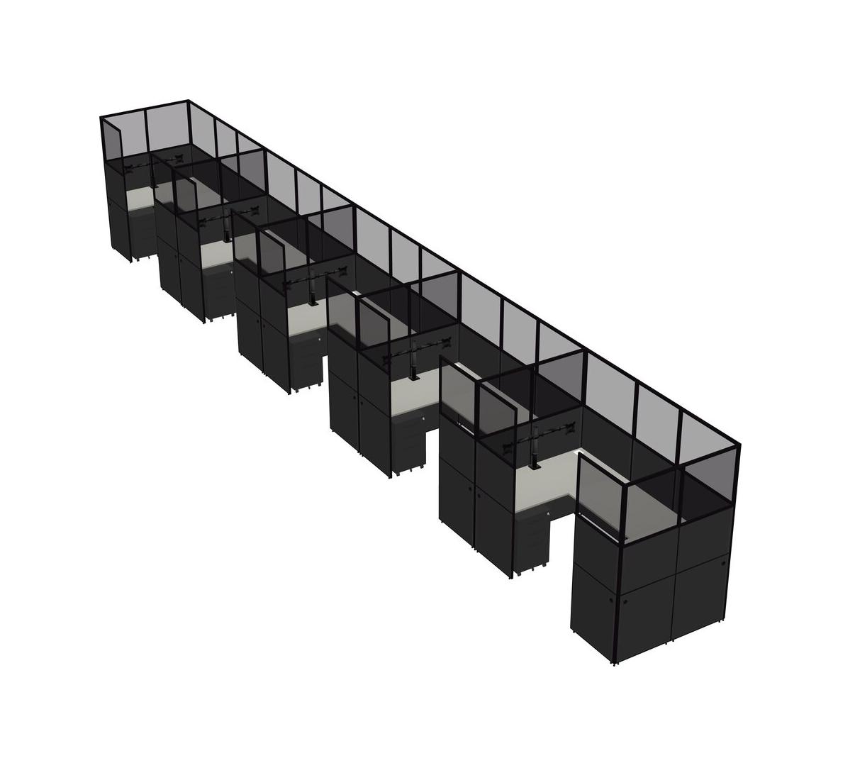 Grey Shadows U-shaped Panel System For 5 Person + Monitor Arm (double Arms) + Metal Mobile Drawers For 5 User(s)