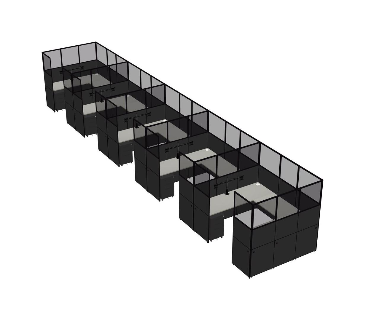 Grey Shadows U-shaped Panel System For 5 Person + Monitor Arm (double Arms) + Metal Mobile Drawers For 5 User(s)