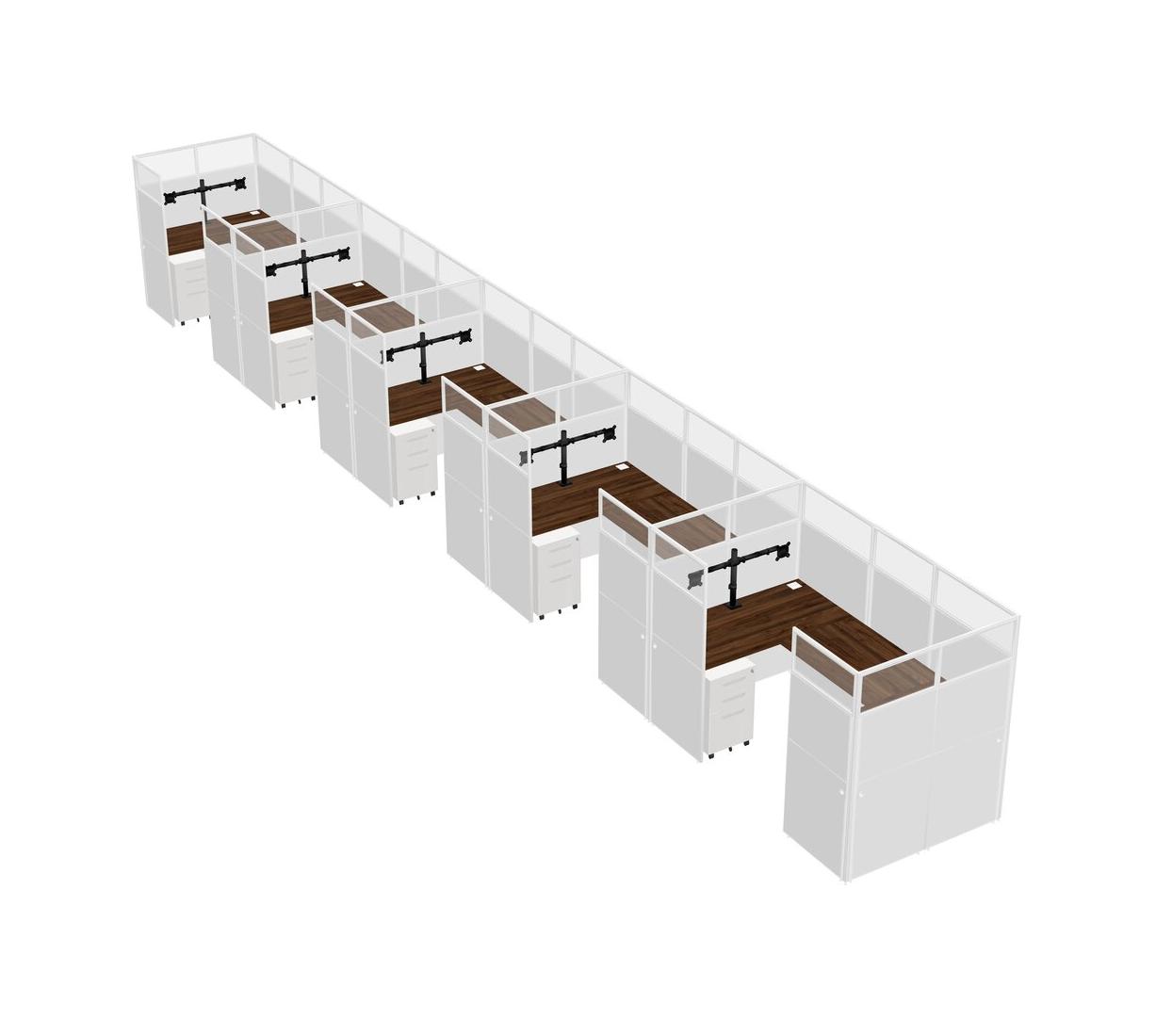 Columbia Walnut U-shaped Panel System For 5 Person + Monitor Arm (double Arms) + Metal Mobile Drawers For 5 User(s)