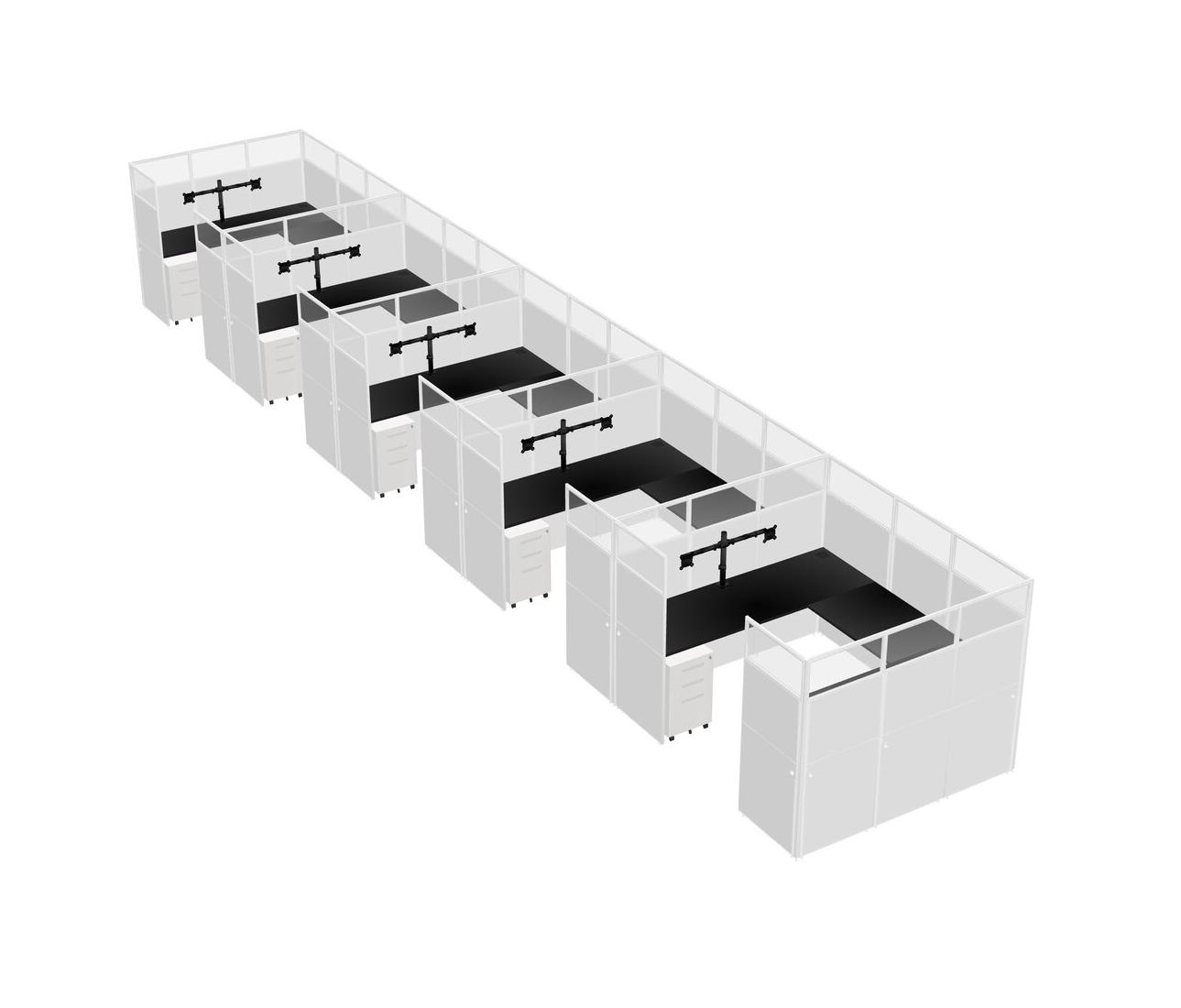 Black U-shaped Panel System For 5 Person + Monitor Arm (double Arms) + Metal Mobile Drawers For 5 User(s)