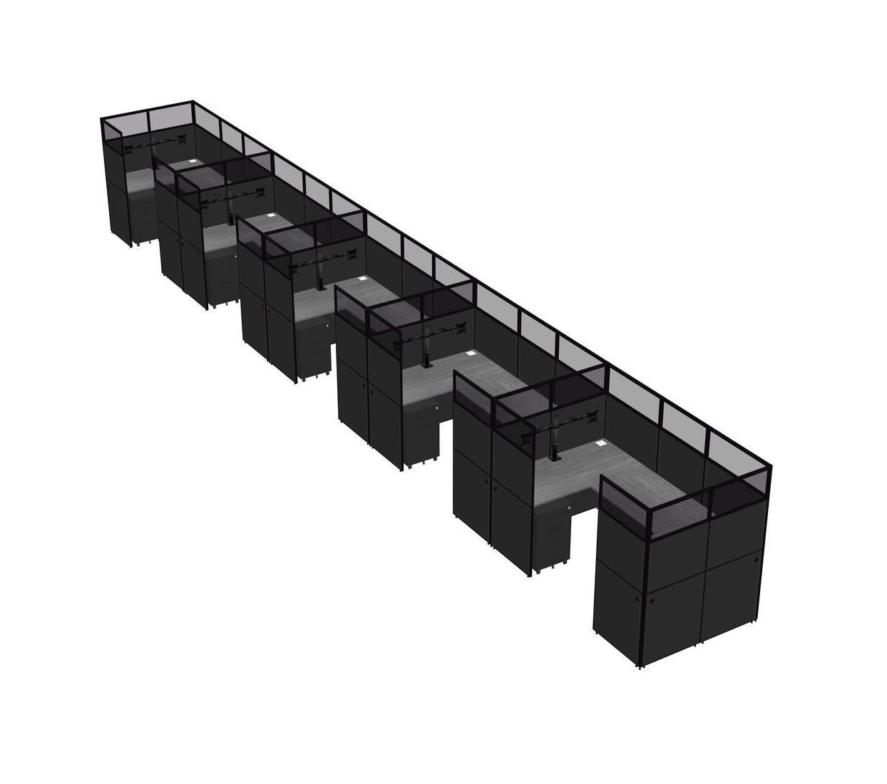 Grey U-shaped Panel System For 5 Person + Monitor Arm (double Arms) + Metal Mobile Drawers For 5 User(s)