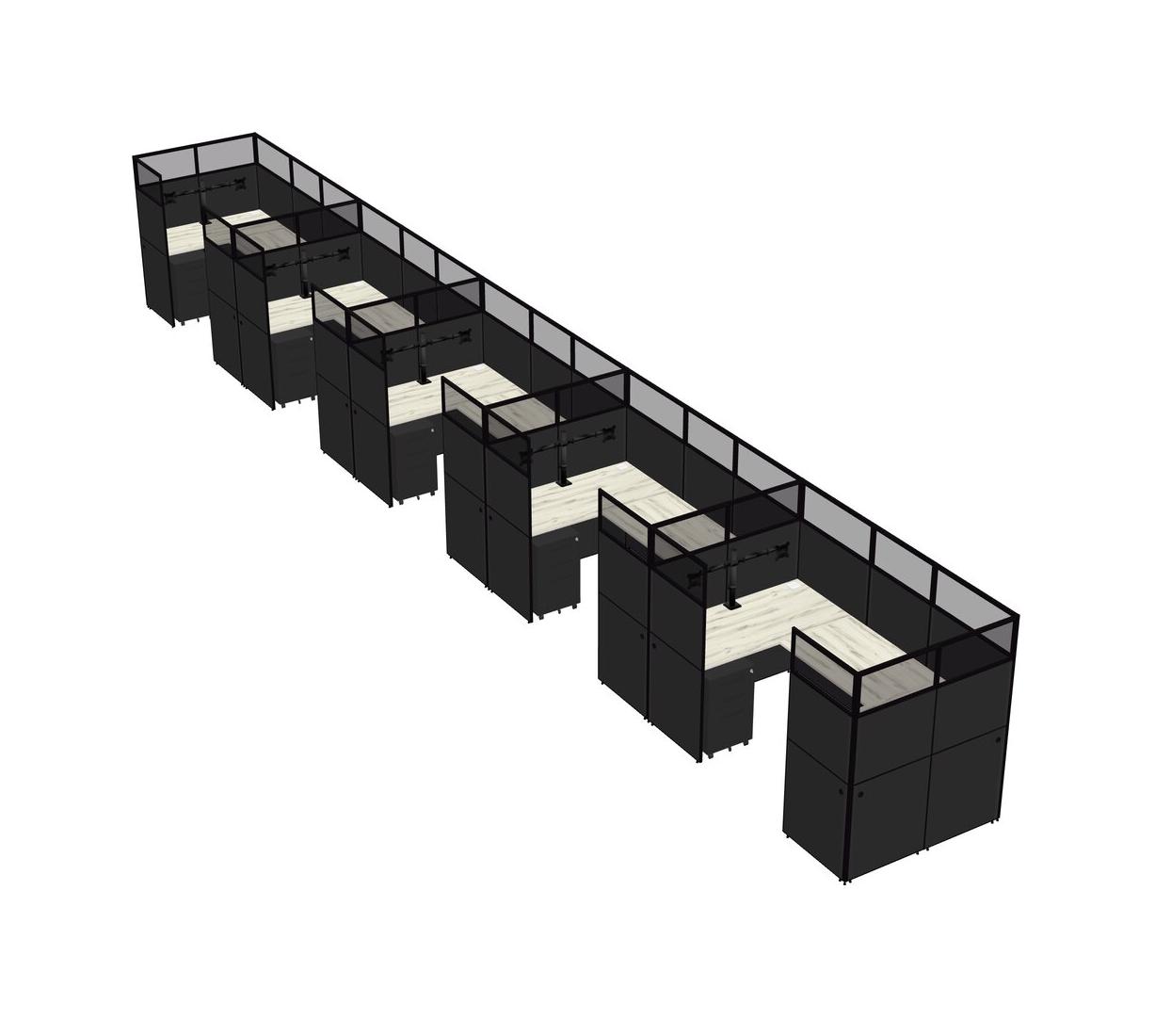 Heinne Holz U-shaped Panel System For 5 Person + Monitor Arm (double Arms) + Metal Mobile Drawers For 5 User(s)