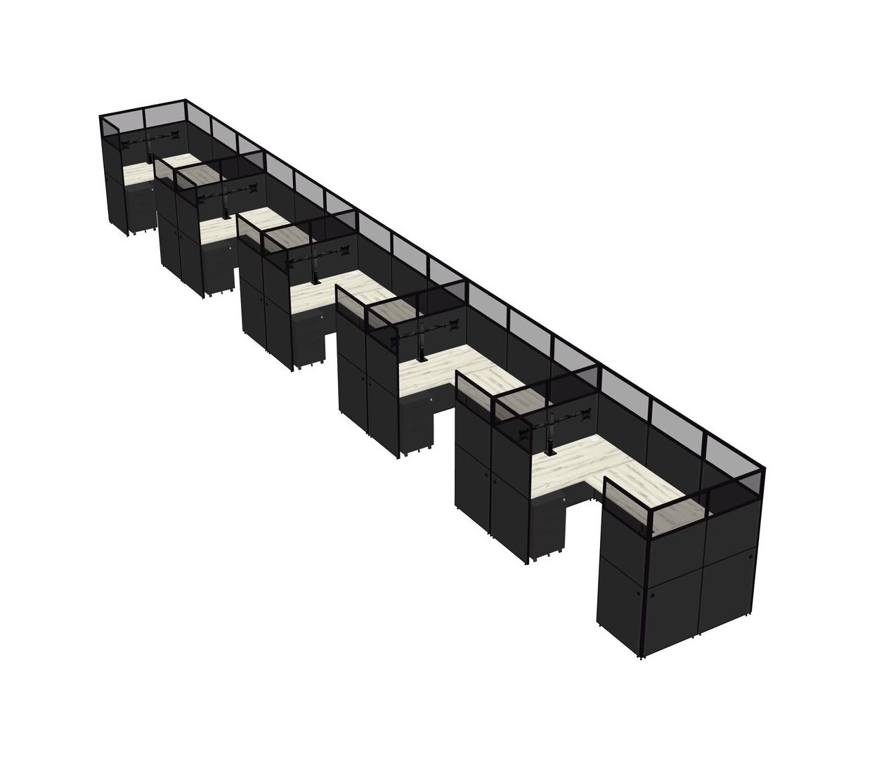 Heinne Holz U-shaped Panel System For 5 Person + Monitor Arm (double Arms) + Metal Mobile Drawers For 5 User(s)