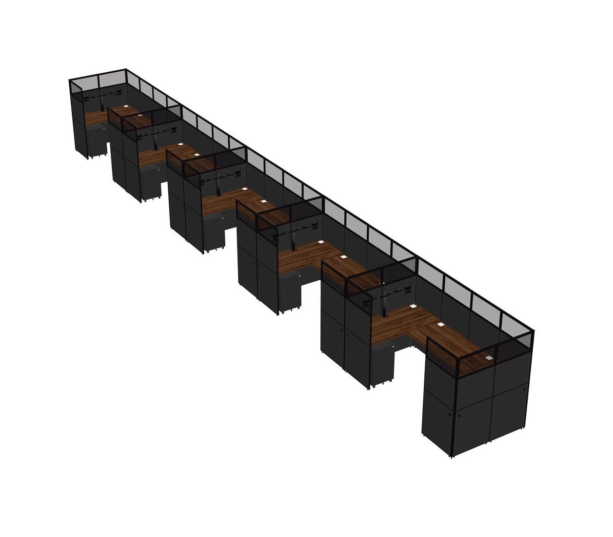 Columbia Walnut U-shaped Panel System For 5 Person + Monitor Arm (double Arms) + Metal Mobile Drawers For 5 User(s)