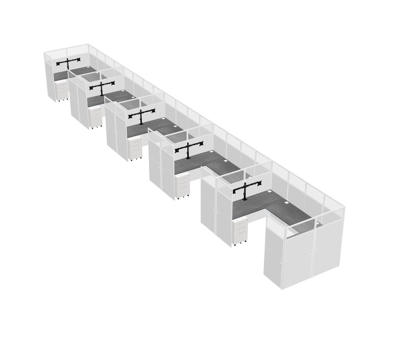 Grey U-shaped Panel System For 5 Person + Monitor Arm (double Arms) + Metal Mobile Drawers For 5 User(s)
