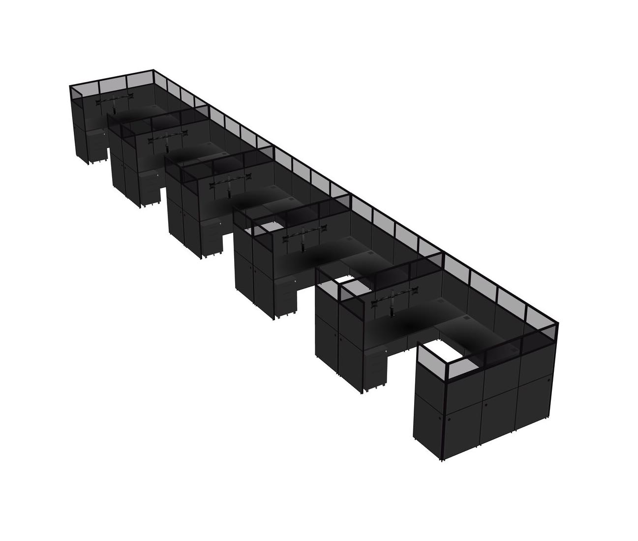 Black U-shaped Panel System For 5 Person + Monitor Arm (double Arms) + Metal Mobile Drawers For 5 User(s)