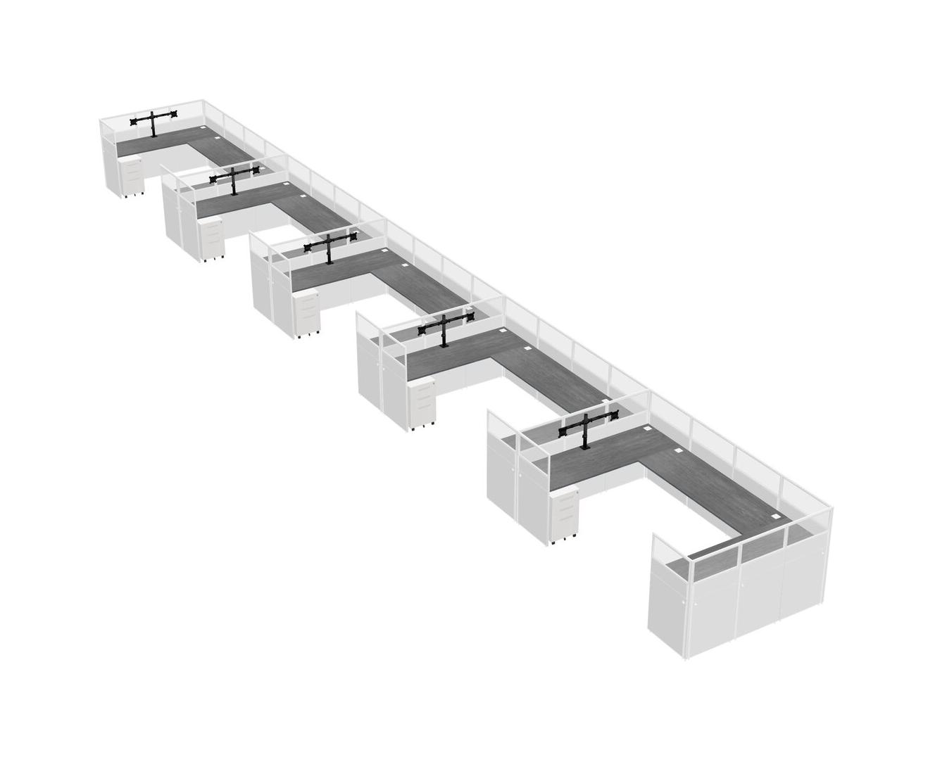 Grey U-shaped Panel System For 5 Person + Monitor Arm (double Arms) + Metal Mobile Drawers For 5 User(s)