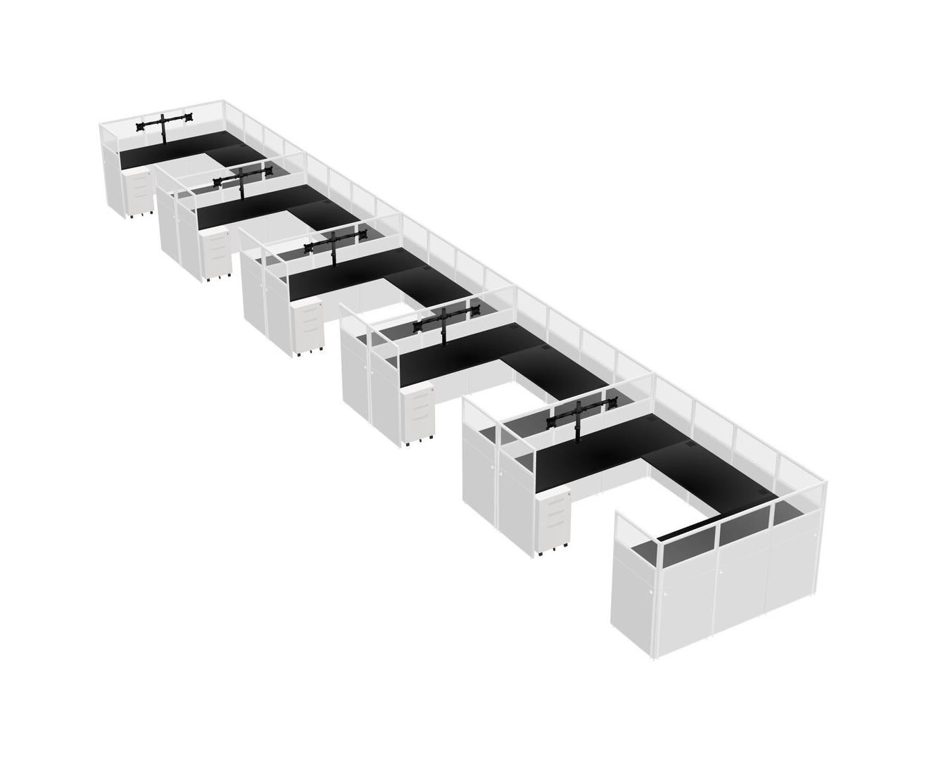 Black U-shaped Panel System For 5 Person + Monitor Arm (double Arms) + Metal Mobile Drawers For 5 User(s)