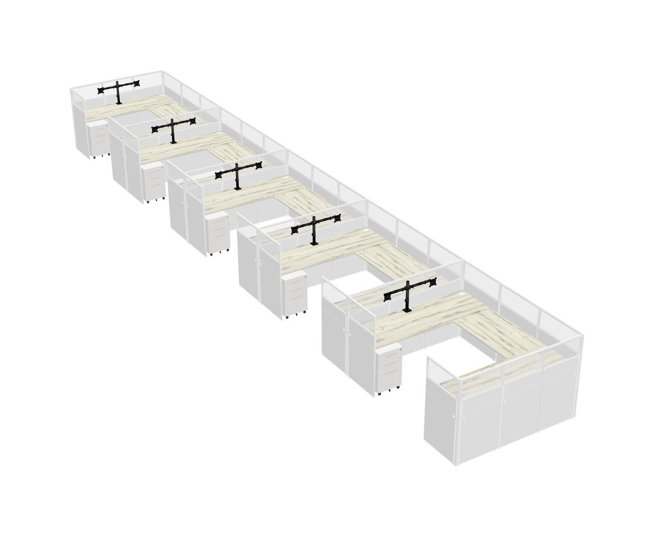 Heinne Holz U-shaped Panel System For 5 Person + Monitor Arm (double Arms) + Metal Mobile Drawers For 5 User(s)