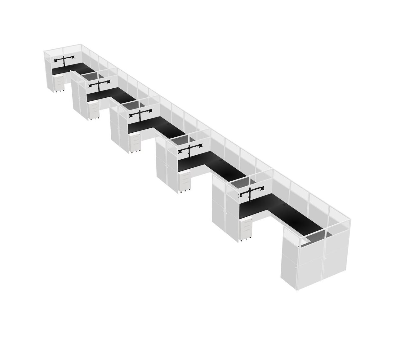 Black U-shaped Panel System For 5 Person + Monitor Arm (double Arms) + Metal Mobile Drawers For 5 User(s)