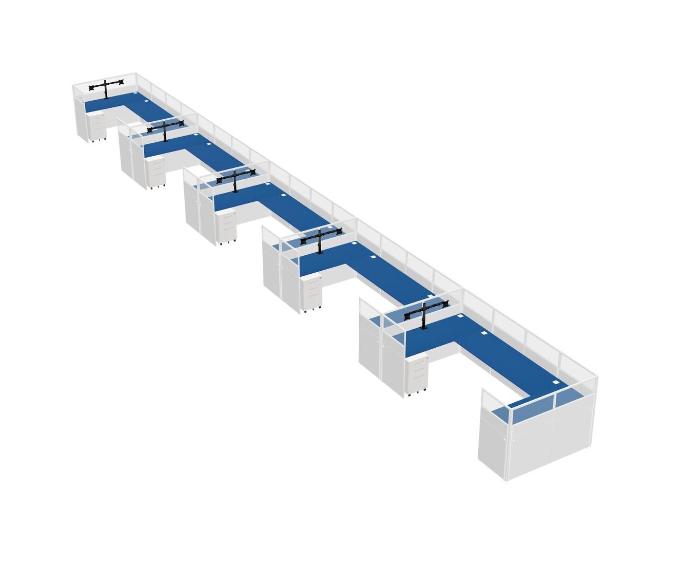 Prism Blue U-shaped Panel System For 5 Person + Monitor Arm (double Arms) + Metal Mobile Drawers For 5 User(s)