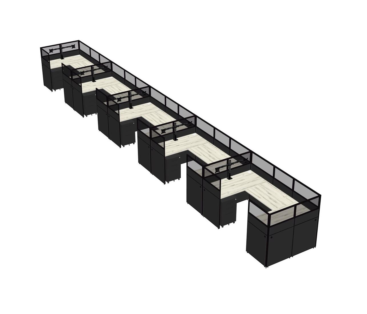 Heinne Holz U-shaped Panel System For 5 Person + Monitor Arm (double Arms) + Metal Mobile Drawers For 5 User(s)
