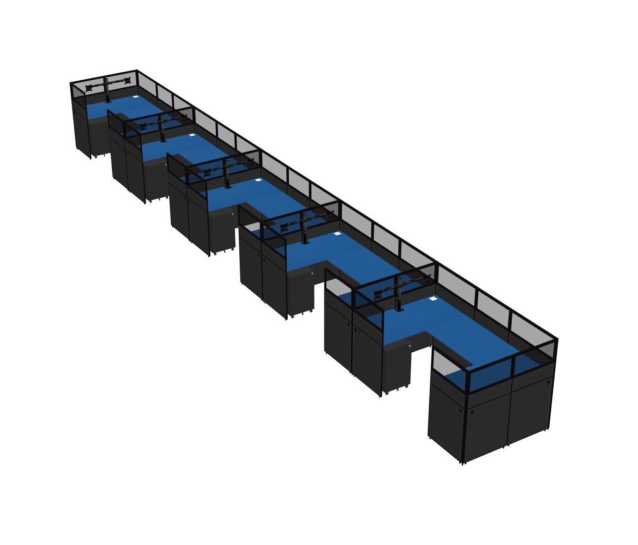 Prism Blue U-shaped Panel System For 5 Person + Monitor Arm (double Arms) + Metal Mobile Drawers For 5 User(s)