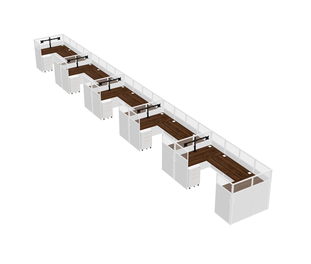 Columbia Walnut U-shaped Panel System For 5 Person + Monitor Arm (double Arms) + Metal Mobile Drawers For 5 User(s)