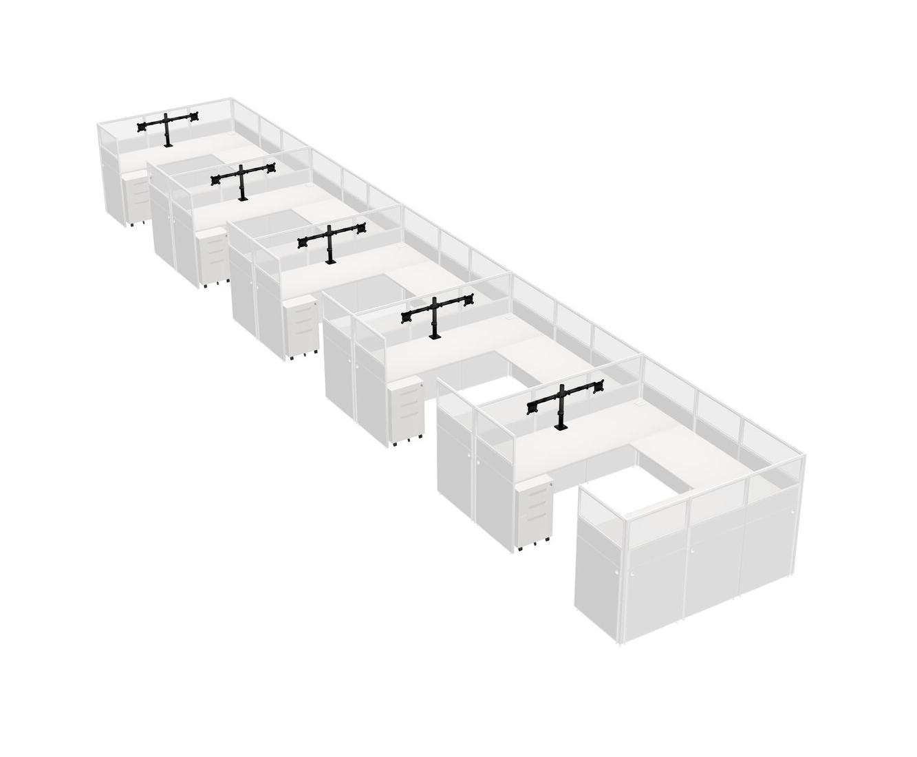 White U-shaped Panel System For 5 Person + Monitor Arm (double Arms) + Metal Mobile Drawers For 5 User(s)