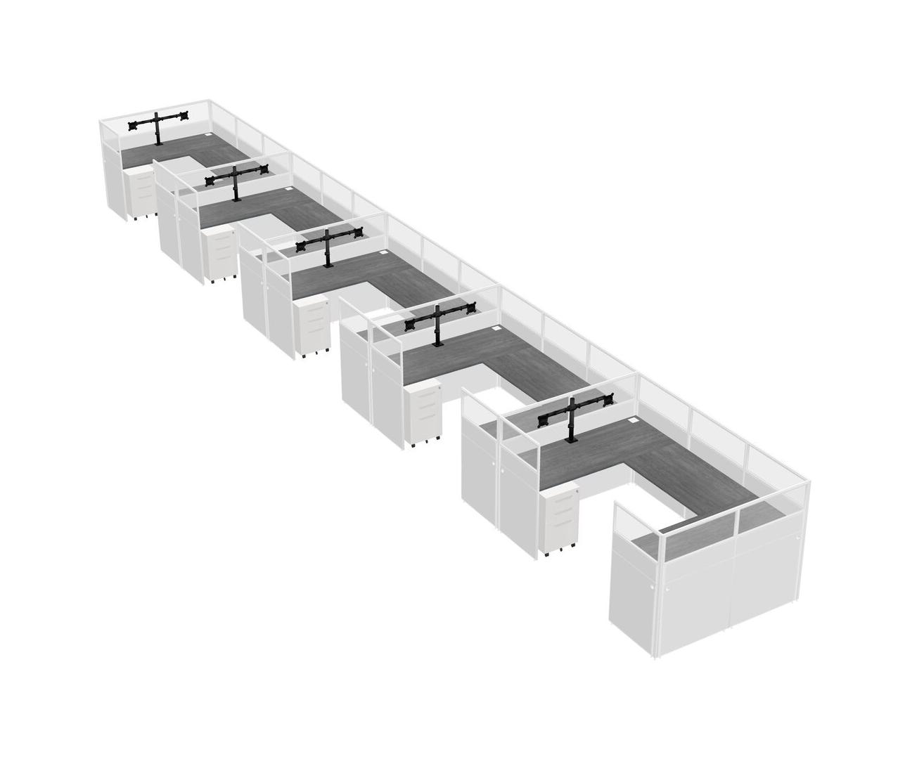 Grey U-shaped Panel System For 5 Person + Monitor Arm (double Arms) + Metal Mobile Drawers For 5 User(s)