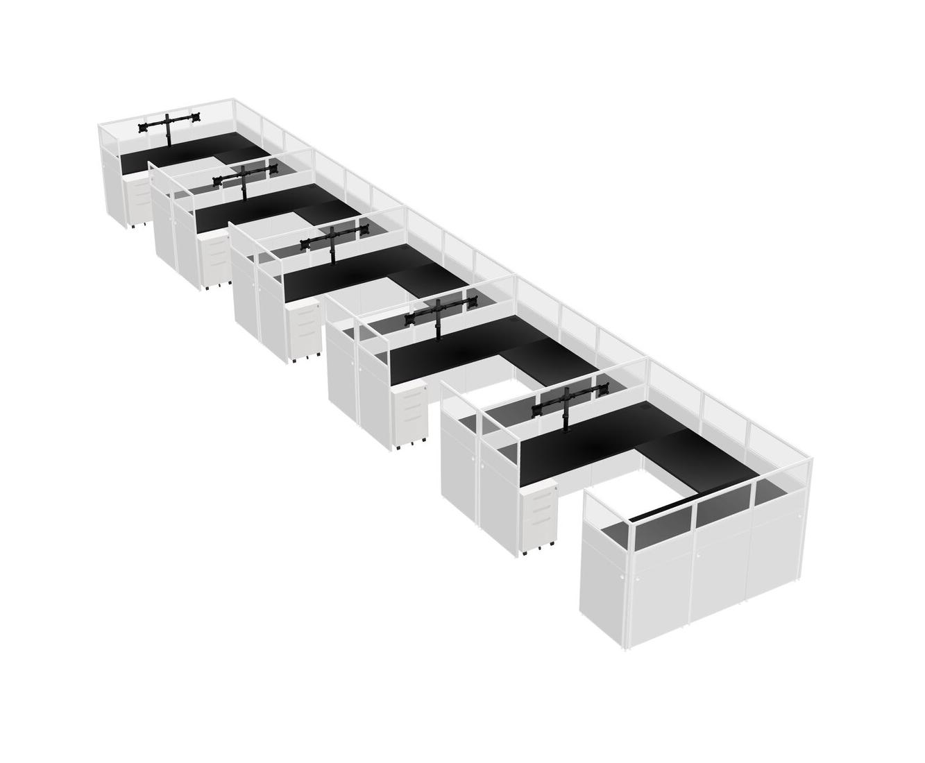 Black U-shaped Panel System For 5 Person + Monitor Arm (double Arms) + Metal Mobile Drawers For 5 User(s)