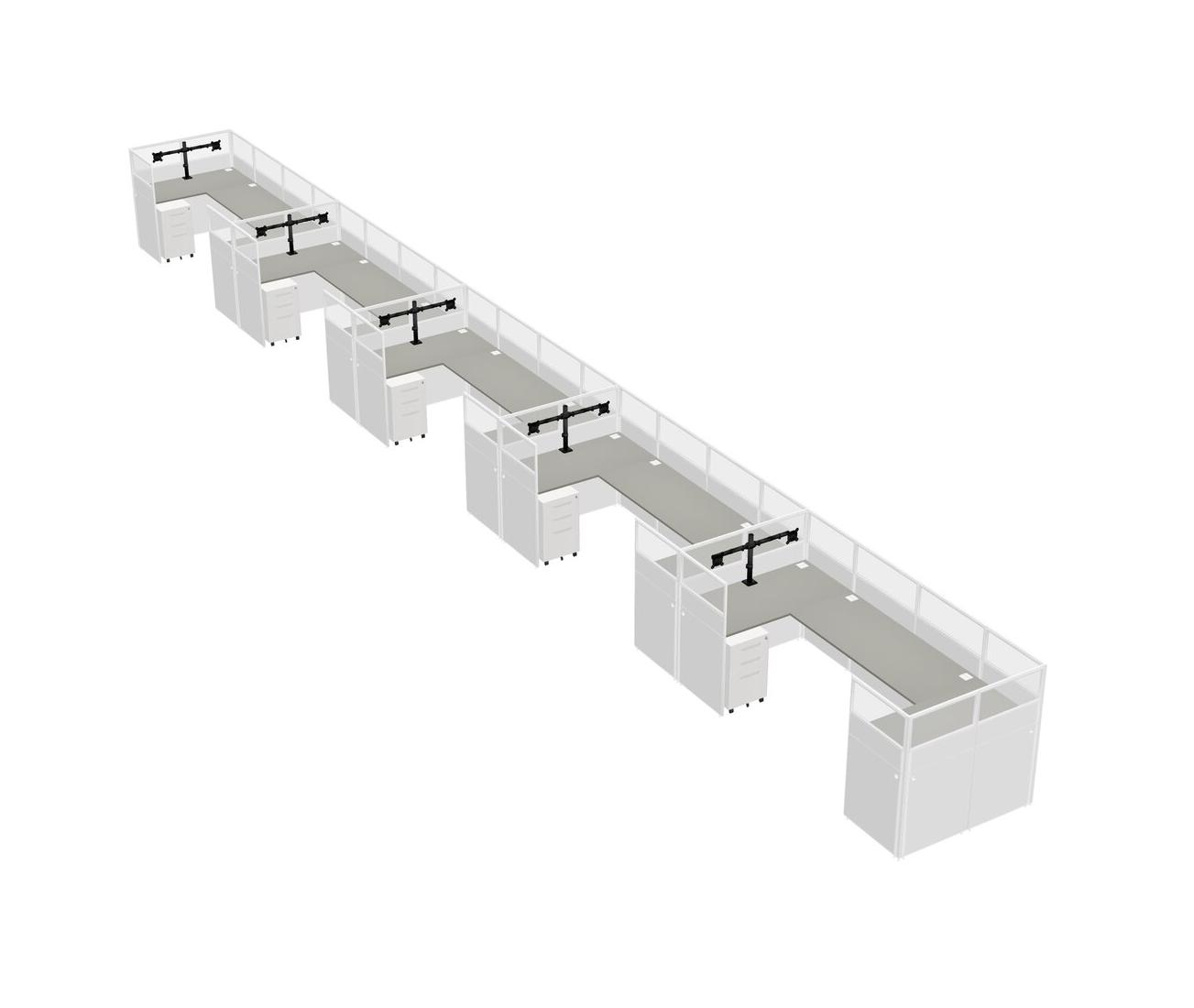 Grey Shadows U-shaped Panel System For 5 Person + Monitor Arm (double Arms) + Metal Mobile Drawers For 5 User(s)