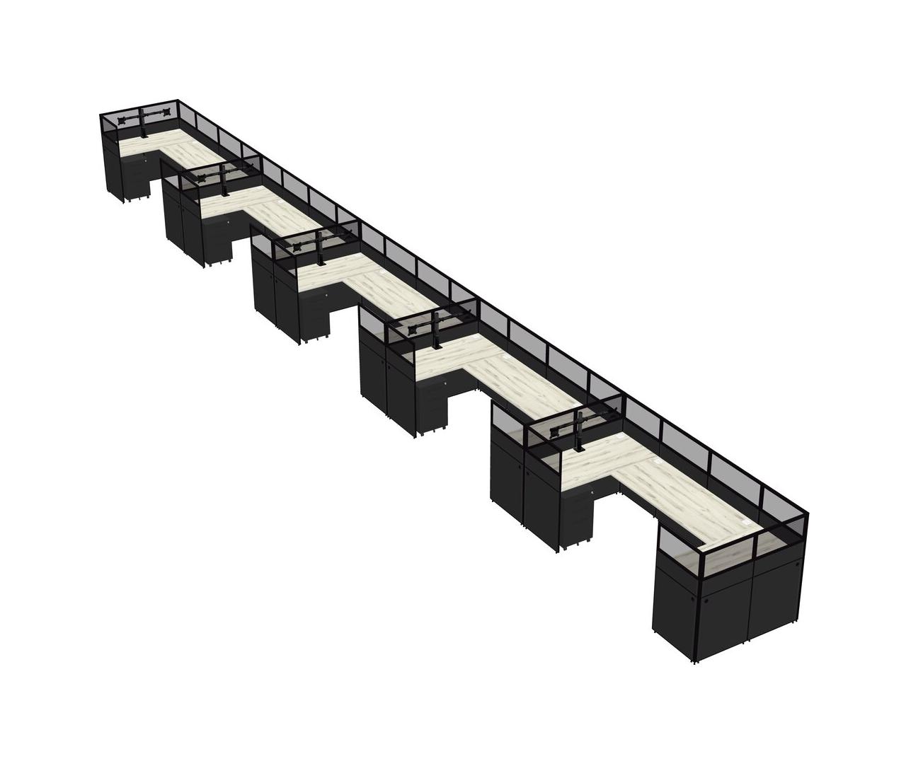Heinne Holz U-shaped Panel System For 5 Person + Monitor Arm (double Arms) + Metal Mobile Drawers For 5 User(s)
