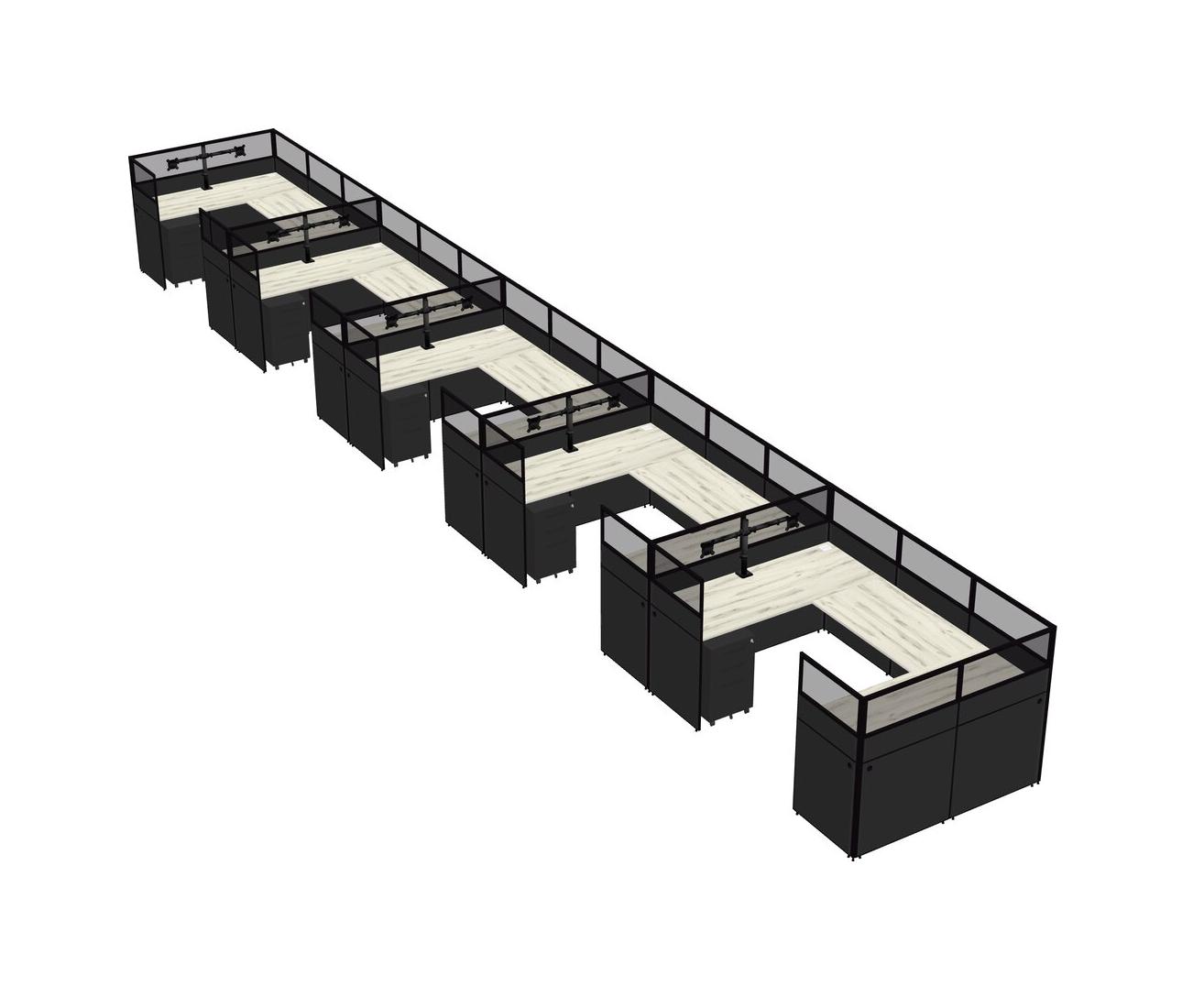 Heinne Holz U-shaped Panel System For 5 Person + Monitor Arm (double Arms) + Metal Mobile Drawers For 5 User(s)