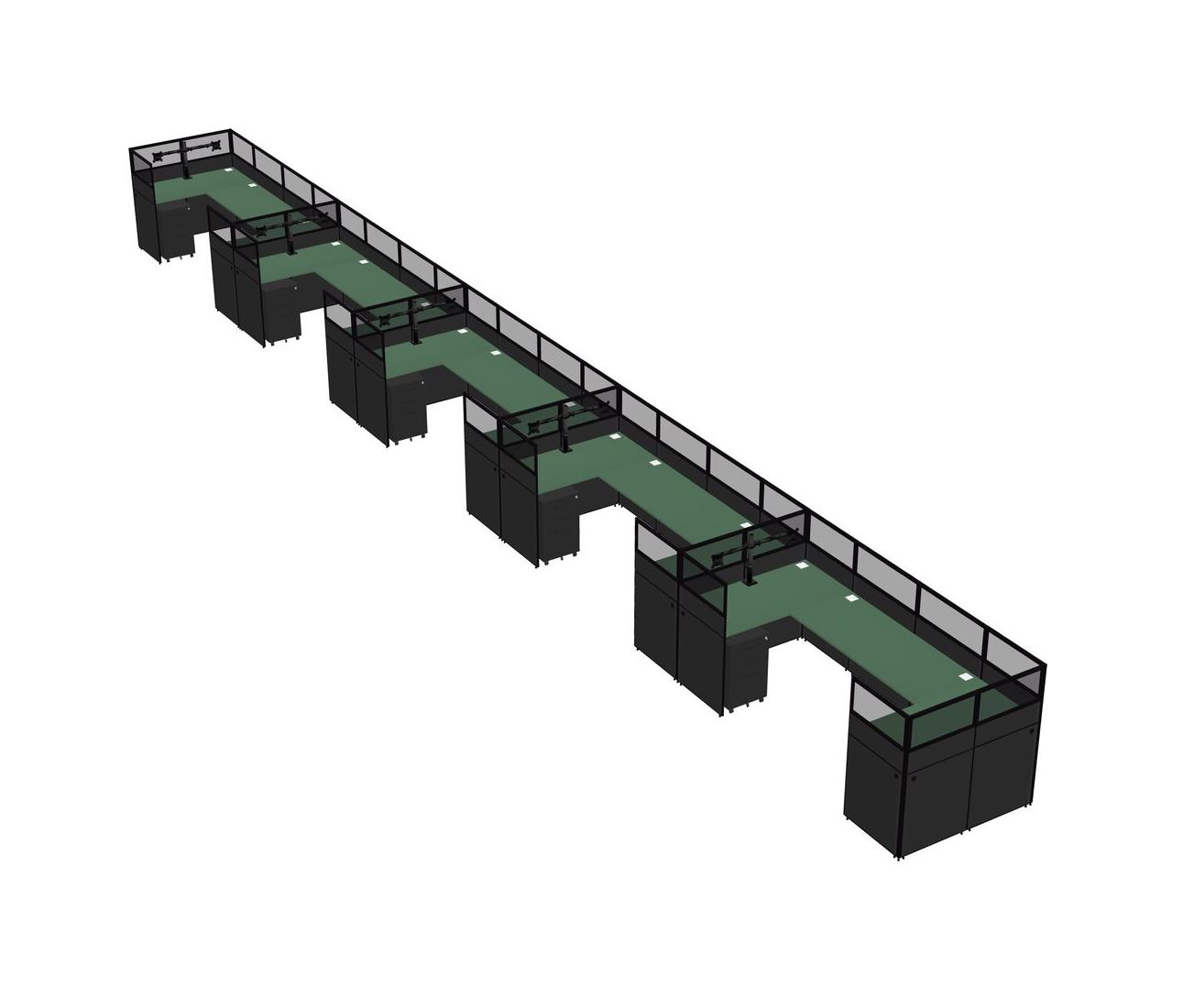 Green U-shaped Panel System For 5 Person + Monitor Arm (double Arms) + Metal Mobile Drawers For 5 User(s)