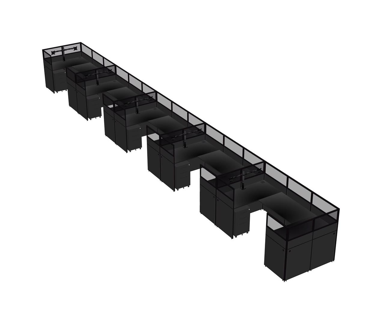 Black U-shaped Panel System For 5 Person + Monitor Arm (double Arms) + Metal Mobile Drawers For 5 User(s)