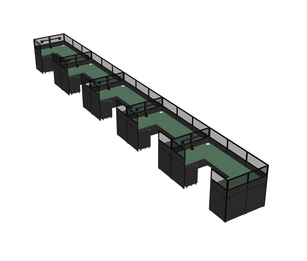 Green U-shaped Panel System For 5 Person + Monitor Arm (double Arms) + Metal Mobile Drawers For 5 User(s)