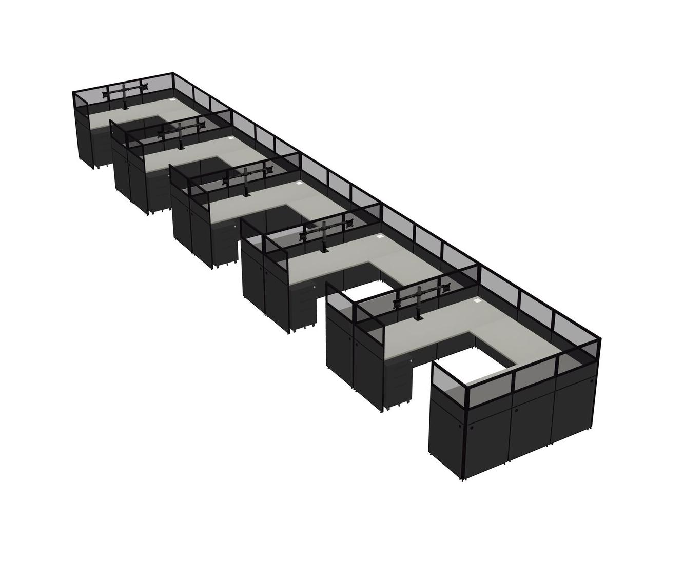 Grey Shadows U-shaped Panel System For 5 Person + Monitor Arm (double Arms) + Metal Mobile Drawers For 5 User(s)