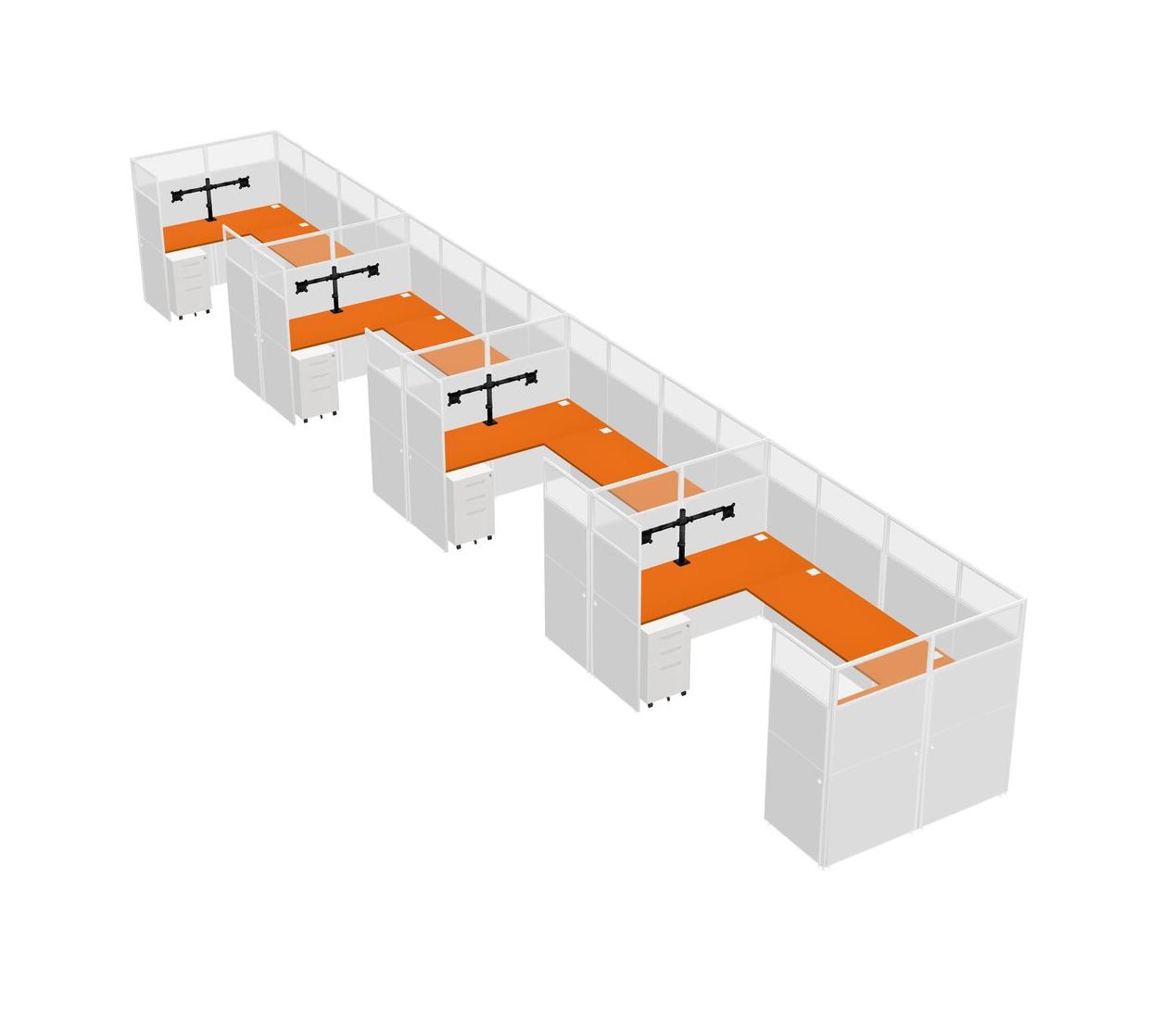 Orange U-shaped Panel System For 4 Person + Monitor Arm (double Arms) + Metal Mobile Drawers For 4 User(s)