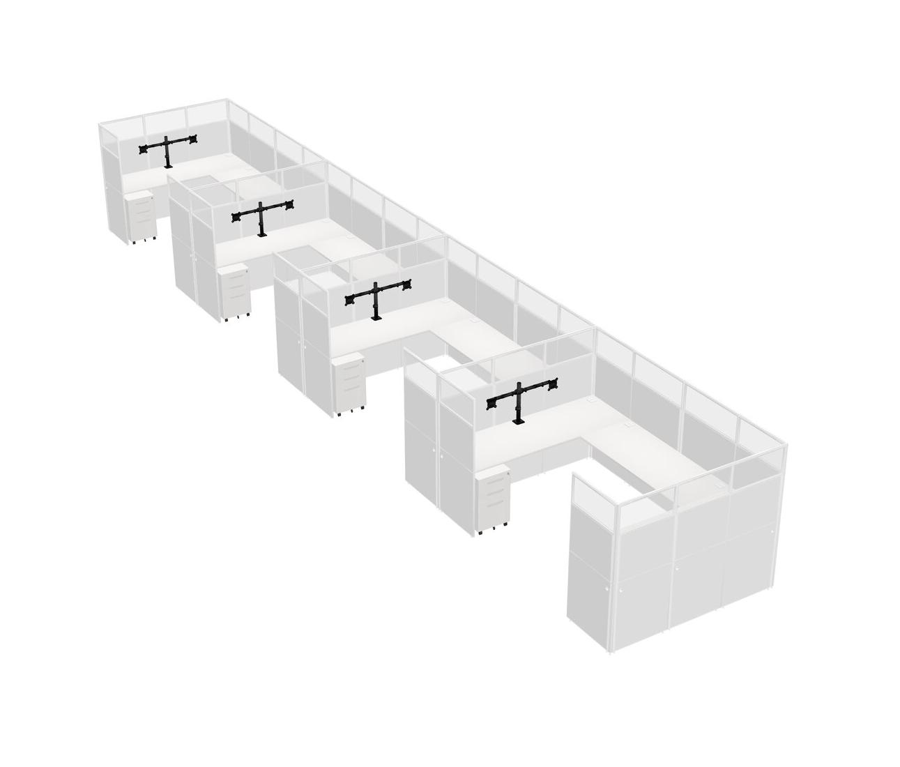 White U-shaped Panel System For 4 Person + Monitor Arm (double Arms) + Metal Mobile Drawers For 4 User(s)