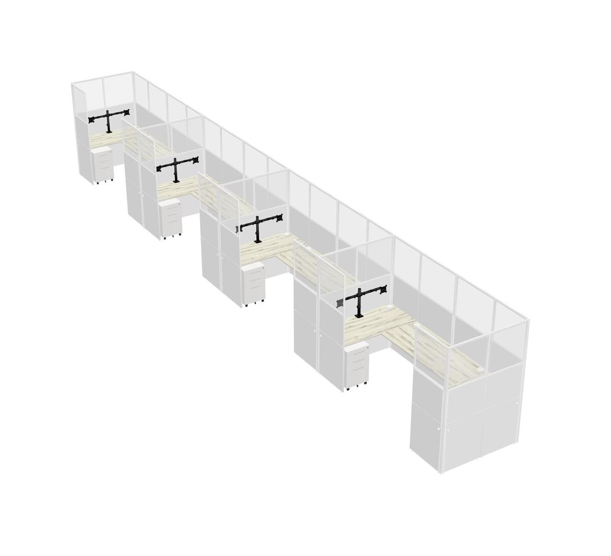 Heinne Holz U-shaped Panel System For 4 Person + Monitor Arm (double Arms) + Metal Mobile Drawers For 4 User(s)