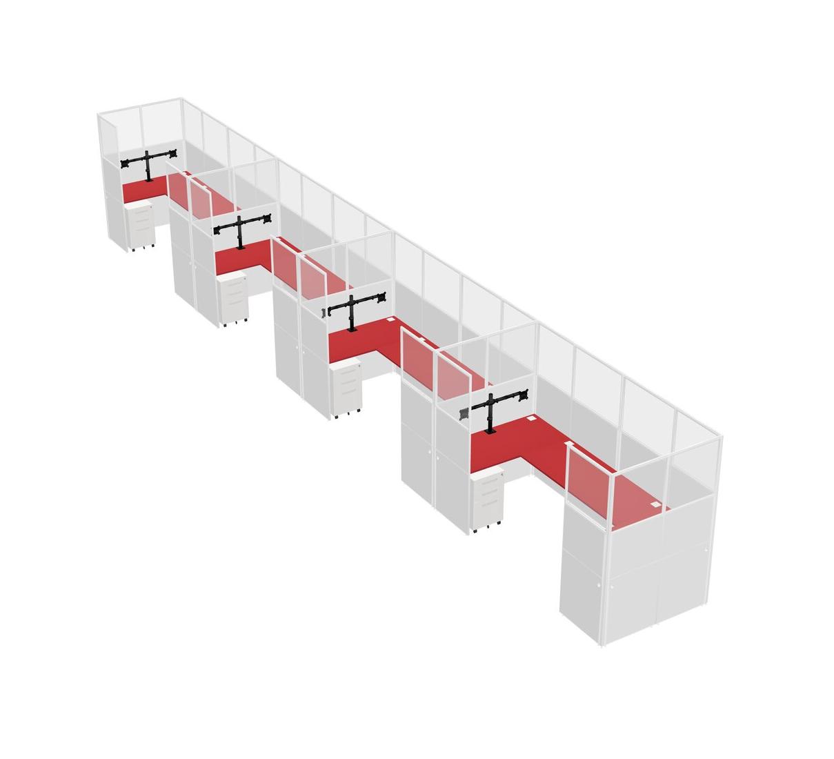 Prism Red U-shaped Panel System For 4 Person + Monitor Arm (double Arms) + Metal Mobile Drawers For 4 User(s)