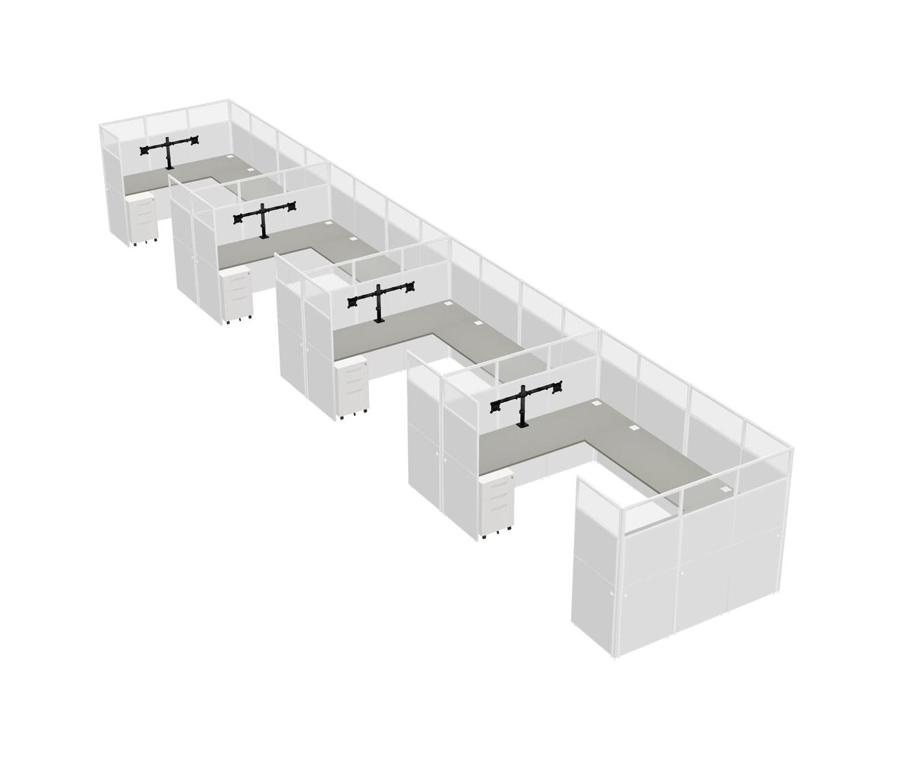 Grey Shadows U-shaped Panel System For 4 Person + Monitor Arm (double Arms) + Metal Mobile Drawers For 4 User(s)
