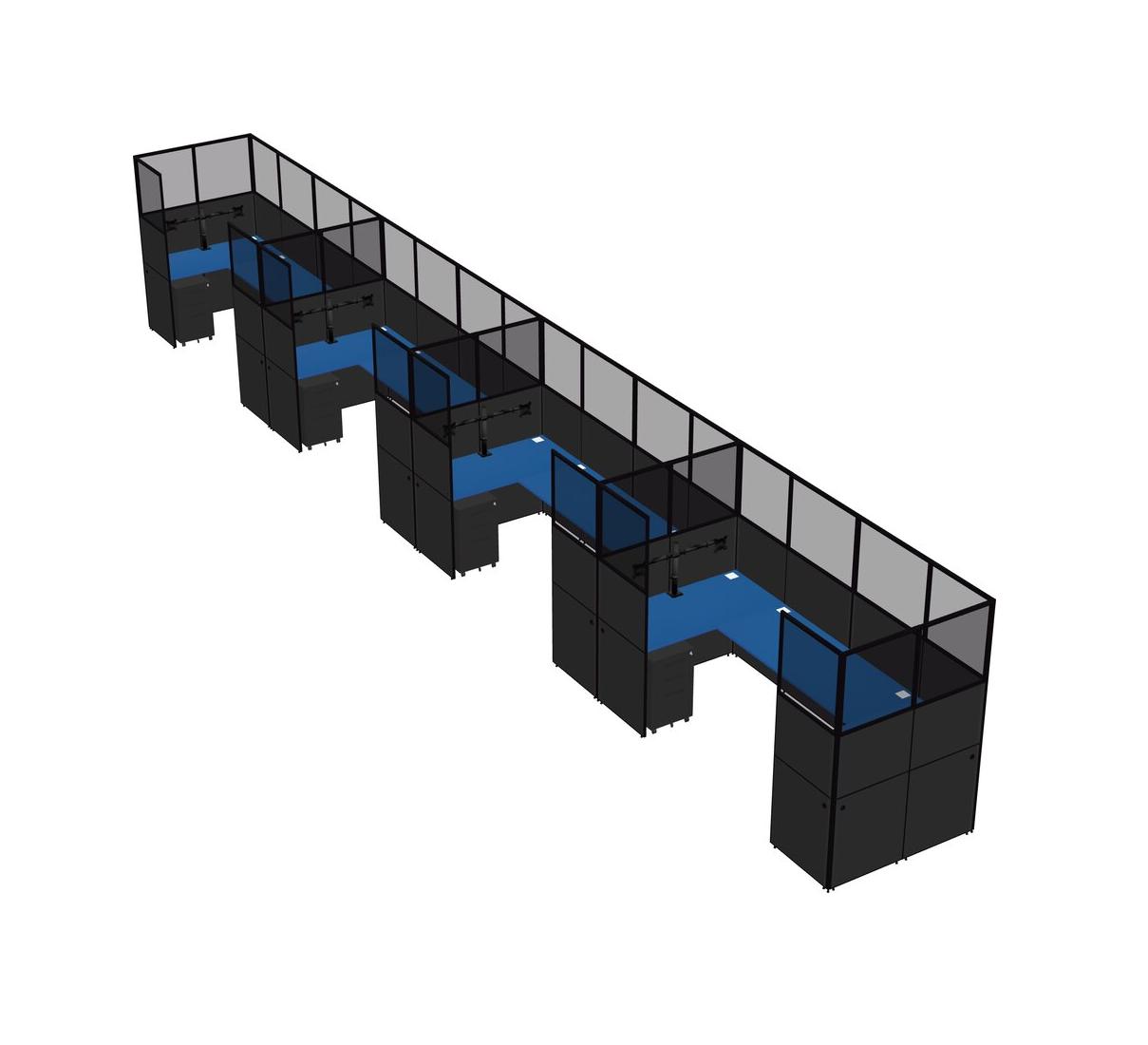 Prism Blue U-shaped Panel System For 4 Person + Monitor Arm (double Arms) + Metal Mobile Drawers For 4 User(s)