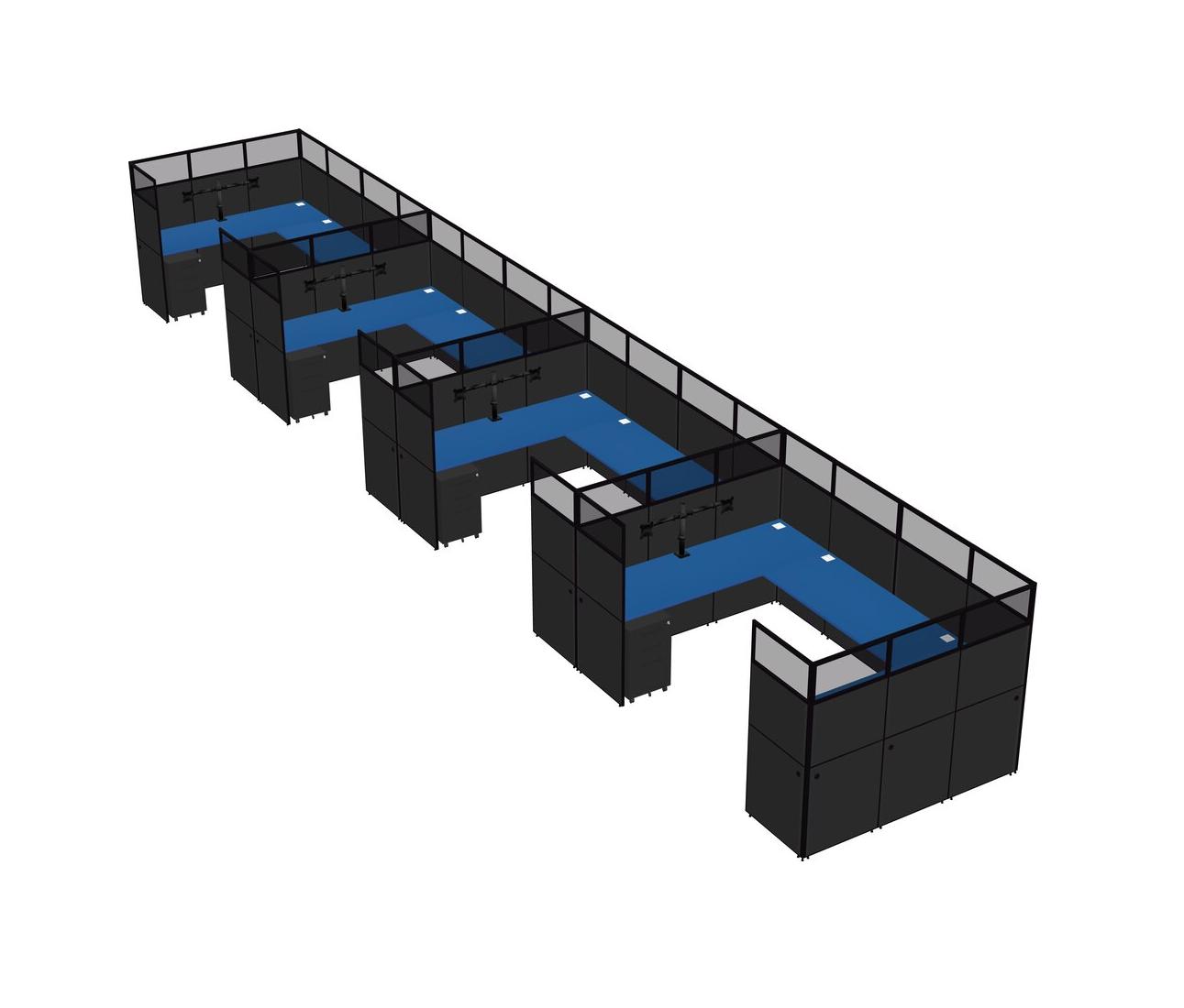 Prism Blue U-shaped Panel System For 4 Person + Monitor Arm (double Arms) + Metal Mobile Drawers For 4 User(s)