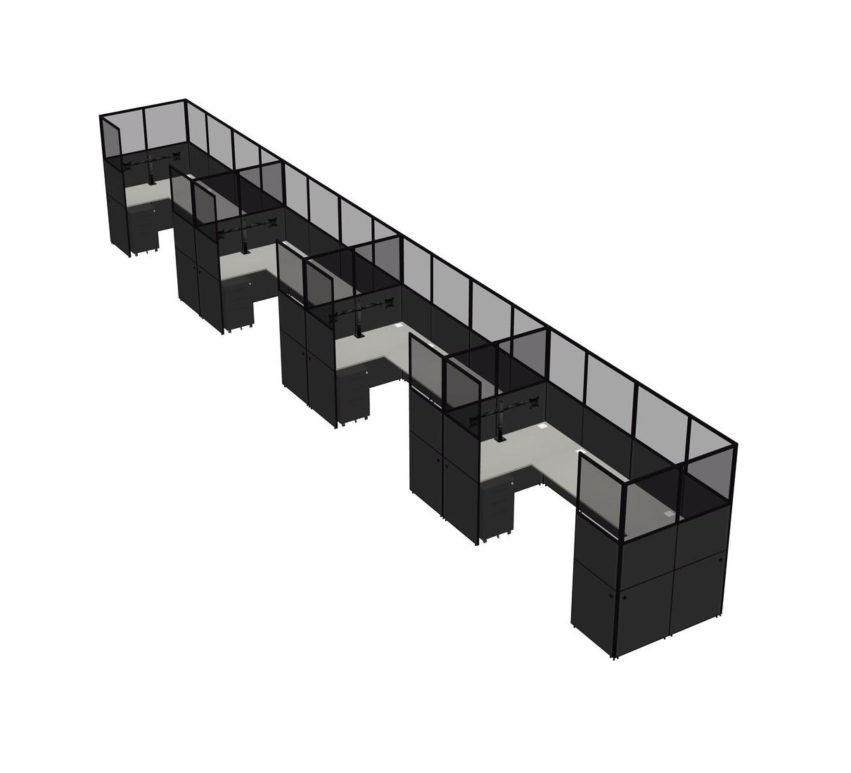 Grey Shadows U-shaped Panel System For 4 Person + Monitor Arm (double Arms) + Metal Mobile Drawers For 4 User(s)