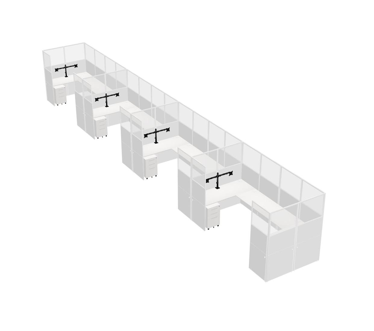 White U-shaped Panel System For 4 Person + Monitor Arm (double Arms) + Metal Mobile Drawers For 4 User(s)