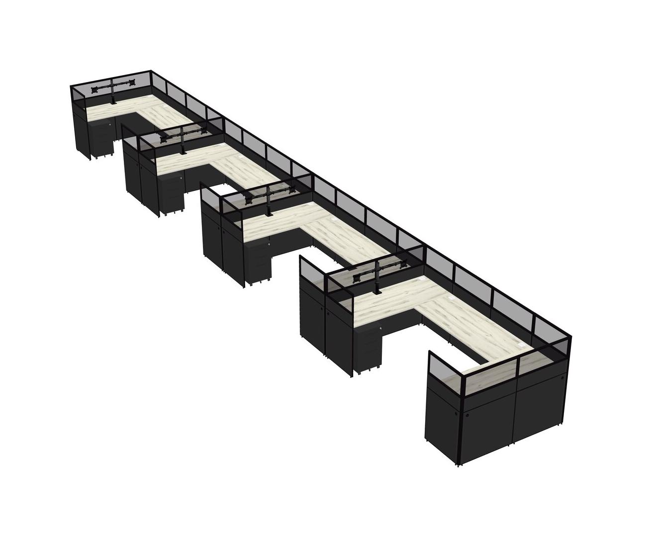 Heinne Holz U-shaped Panel System For 4 Person + Monitor Arm (double Arms) + Metal Mobile Drawers For 4 User(s)