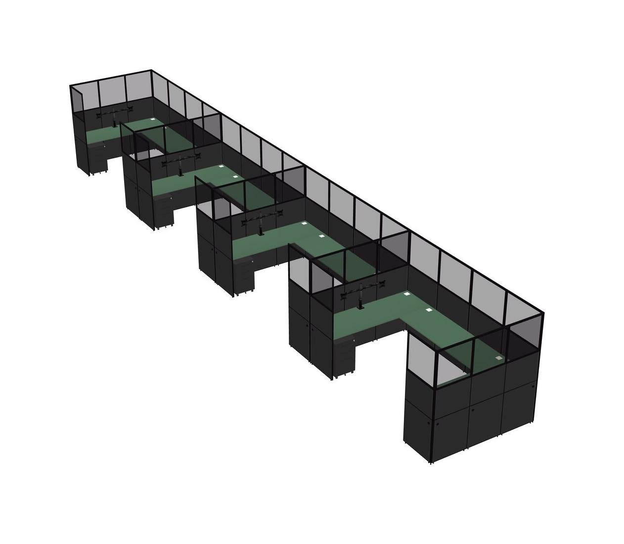 Green U-shaped Panel System For 4 Person + Monitor Arm (double Arms) + Metal Mobile Drawers For 4 User(s)